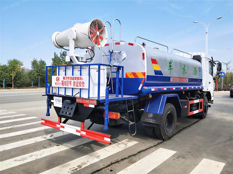 上裝配置:罐體采用國標Q235碳鋼板制作,可選用30米、40米、50米中型霧炮,罐體采用機器壓板一次性成型技術,采用先進旋邊機,罐體包罐機工藝保證了罐體制作的精度和美觀。罐體厚度4mm,前后封頭5MM加厚型,罐體實際容積約12立方(12噸),程力獨有烤漆工藝,多層底漆、防腐除銹,面漆噴涂。 功能齊全,配備前沖、后灑、側噴、綠化灑水炮,采用優質水泵,合理設計水路管道,氣控取力器,作業能力強;采用柴油發電機大功率霧炮機,噴灑距離選裝30-50米射程,運用范圍廣泛。