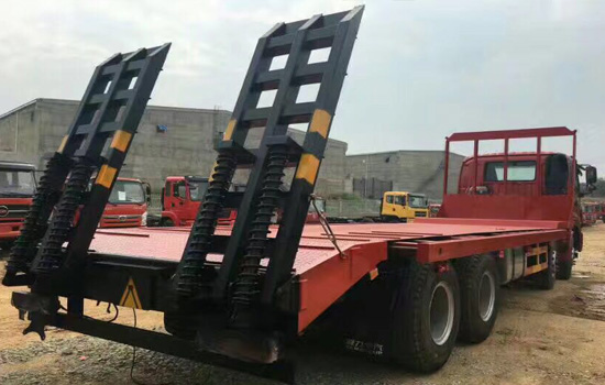上裝配置:平板底板橫梁采用120*120*5mm方管,底板采用8mm/10mm/12mm花紋板,帶加密斜支撐,爬梯采用雙彈簧加強型設計,采用三道筋+雙彈簧加固焊接,可選裝液壓爬梯或折疊加長型液壓爬梯,斜坡處帶后支腿,平板有效板長8.8米(含斜坡),板寬2.5米(可手動伸展至3.2米寬),可以選擇貨箱帶欄板設計,35噸及以下噸位挖機首選車型!